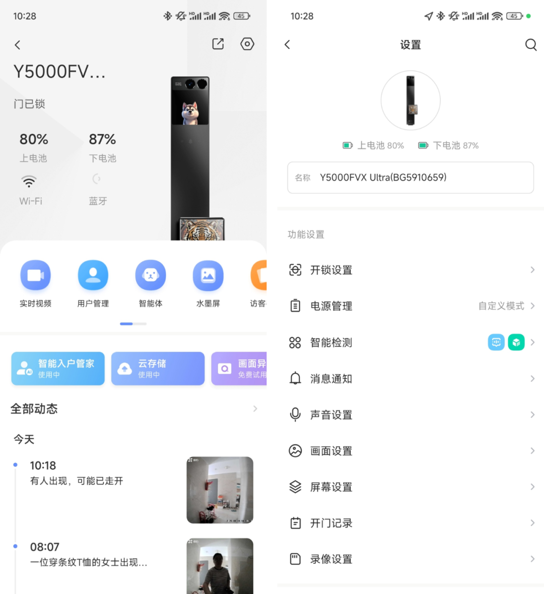 视觉技术一直是萤石的强项。萤石Y5000FVX Ultra采用门前双摄方案,可以在室内屏、手机上查看完整的门前画面,同时,得益于产品的软硬件支撑,画面的光线适应性、清晰度都非常优秀。