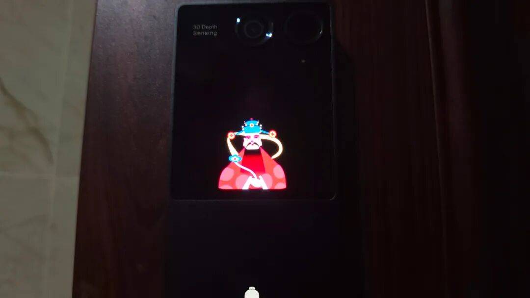 配置方面,前面板采用400万像素主摄+200万副摄的搭配;主摄下方是3D人脸,掌静脉及补光灯等硬件模组。