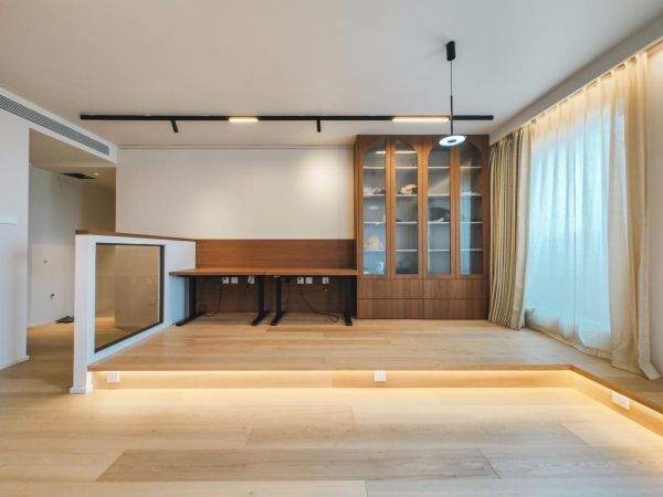 开放式书房:抬高地面划分区域,比独立房间更灵活;