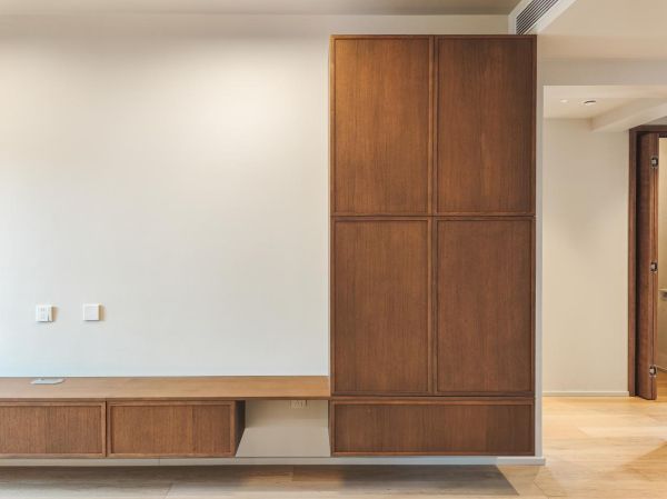 北京老房的痛点——承重墙多、可改空间少,设计师却巧妙将原卫生间改造成土间入户区:耐污板墙面预留洗手池位置,未来入住后清洁手部超方便;通透玻璃玄关柜搭配隐藏灯带,既解决收纳需求,又避免通道压抑感。网友直呼:"这哪是玄关?简直是影视剧里的精致生活!"