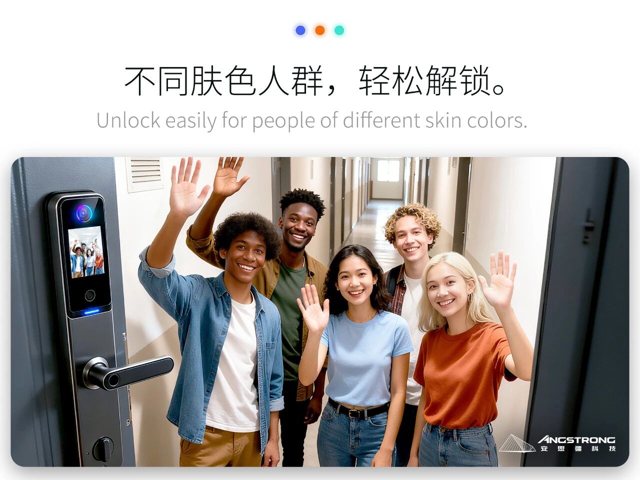 当前智能门锁领域快速发展,海外需求在最近两年需求增加,但传统的生物识别模组主要为黄种人设计,而不能兼容黑人,白人,包括大胡子等场景,严重影响客户体验,成为出海的障碍。安思疆联合腾讯优图实验室,在已有的结构光系列产品Lite X、Lite S基础上,投入了巨大的资源,并且进行了深度的海外市场调研,从而对产品进行了全面的优化升级,解决了以上痛点,助力多家头部企业推出跨人种的智能门锁产品,热销欧美日韩等国家,广受国际用户好评。