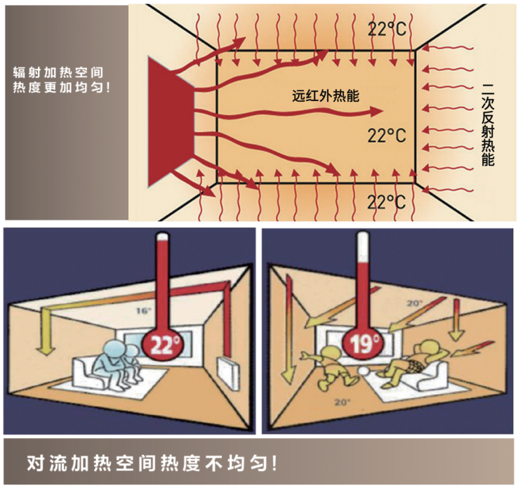 传统取暖的方式大多依赖空气对流,不仅加热慢、能耗高,还容易造成温度分层。而WAPOL远红外发热板通过远红外辐射加热原理,模拟阳光照射的温度分布,让热量直接作用于人体和物体表面。