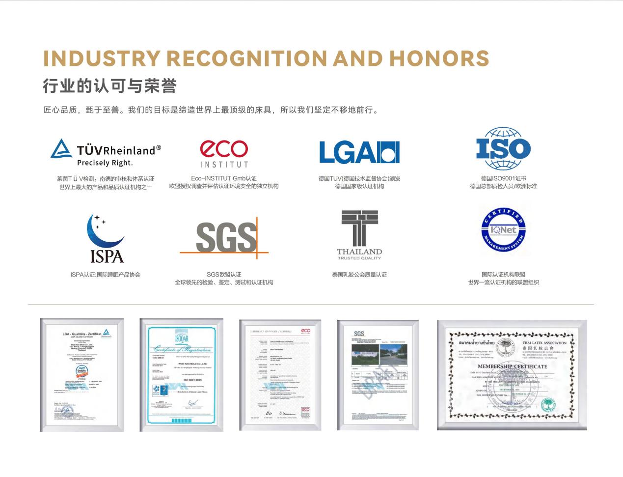 技术落地——从“深睡延长10分钟”到全龄段产品体系海华仕提出“科技以人为本,睡眠因人而异”的理念,针对中国市场推出“深睡延长10分钟”的科研方向。通过德国波浪感应簧、云感空气簧等专利技术,结合手工床垫系列与全品类产品线,覆盖从新生儿到中老年、从单身人士到家庭用户的全场景睡眠需求。此外,品牌通过ISO、LGA、TÜV、ECO、SGS等多项国际权威认证,确保每一件产品在环保、安全与效能上的卓越表现。