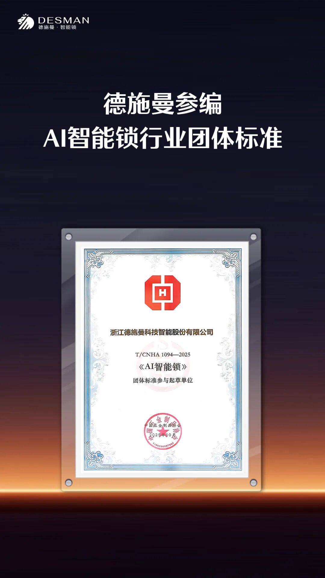 德施曼作为核心企业参与制定了《AI智能锁行业团体标准》,为行业技术规范与质量提升提供重要依据;