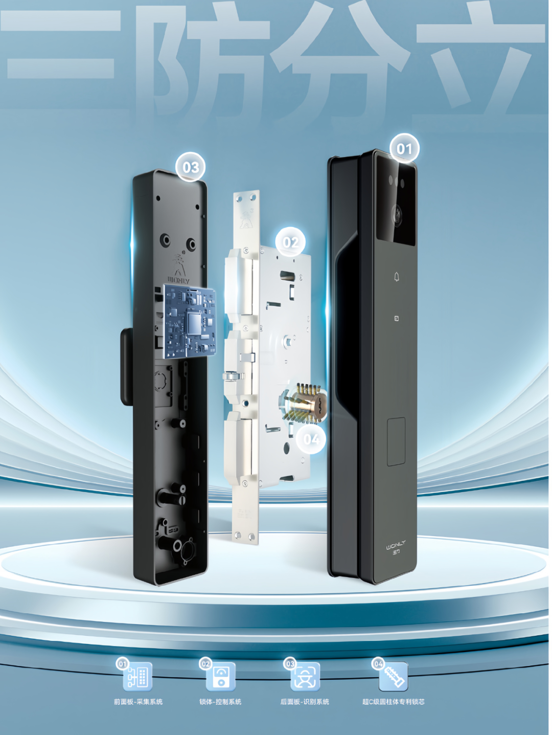 软件层面,首创三防分立结构,将采集、识别、控制系统独立设置,即便外面板被损坏,内部控制系统仍可正常运行。此外,该技术还融合银行U盾原理、国密算法芯片及智能监控报警等功能,建立起智能主动防御体系,全面守护家的安全。