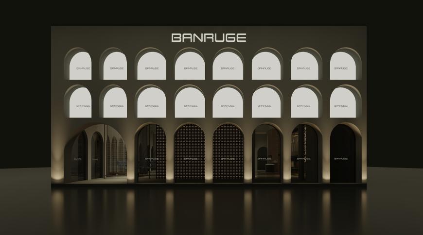 班鲁格展位设计灵感源自意大利文艺复兴时期的拱廊与光影美学,将建筑中的对称、比例与韵律融入收纳系统设计。展位主体以拱门阵列构建空间层次,通过精准的线条分割与材质对比,实现功能与美学的统一,构建出兼具秩序感与呼吸感的沉浸式空间。