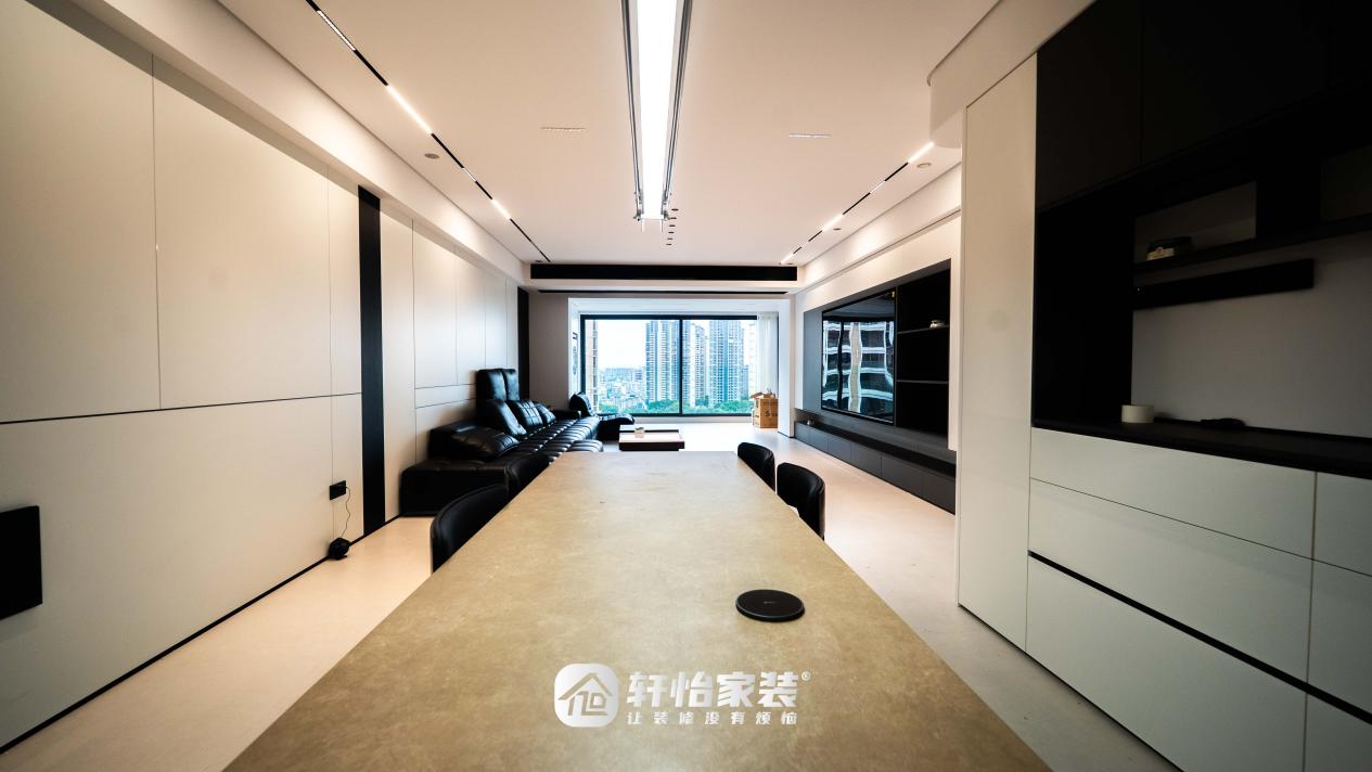更重要的是,在全屋线性灯带和局部暖光的柔和映照下,黑白的冷感被有效中和,营造出一种冷静克制又不失生活气息的独特氛围,完美诠释了何为高级且宜居的现代极简之家。