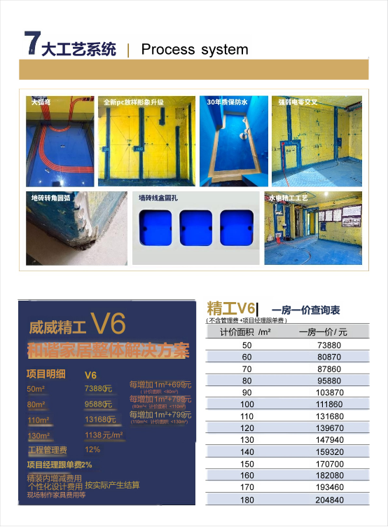 杭州威威整装家居有限公司的精工工艺体系贯穿施工全流程。采用的强电线管蓝色,弱电线管红色是分色布局,施工,强电在顶部布线,弱电走地,开地槽大弧弯工艺,真正的做到一个零交叉施工工艺,我们的强电漏保是全部换了一个施耐德,根据房间的用电率来配的,我们每一路空气开关,确保线路安全无隐患,做到一个真正用电安全。隐蔽工程防水也是最关键的一个环节,我们防水采取的强钢地柔,地面做了双色防水,这样能确保我们防水地面漏刷,养水48小时闭水试验,见证验收防水的效果,没有任何疑问,漏水点,进行回填贴砖。泥木工程中,瓷砖铺贴前,确定品牌花色瓷砖,铺贴排版图进行铺贴,通过激光水平仪校正墙面平整度误差控制在一两毫米。木工吊顶,施工前确定咱们吊顶的风格和方案,根据我们的五步放映法,吊顶水平线进行吊顶吊顶,这样能保证我们的风格和房间的高度没有误差。正如抖音用户“杭州威威讲装修”所言:“惊艳的结果,都藏在笨拙的细节里;所谓成功,不过是把每个‘小马虎’都变成‘没问题’。”