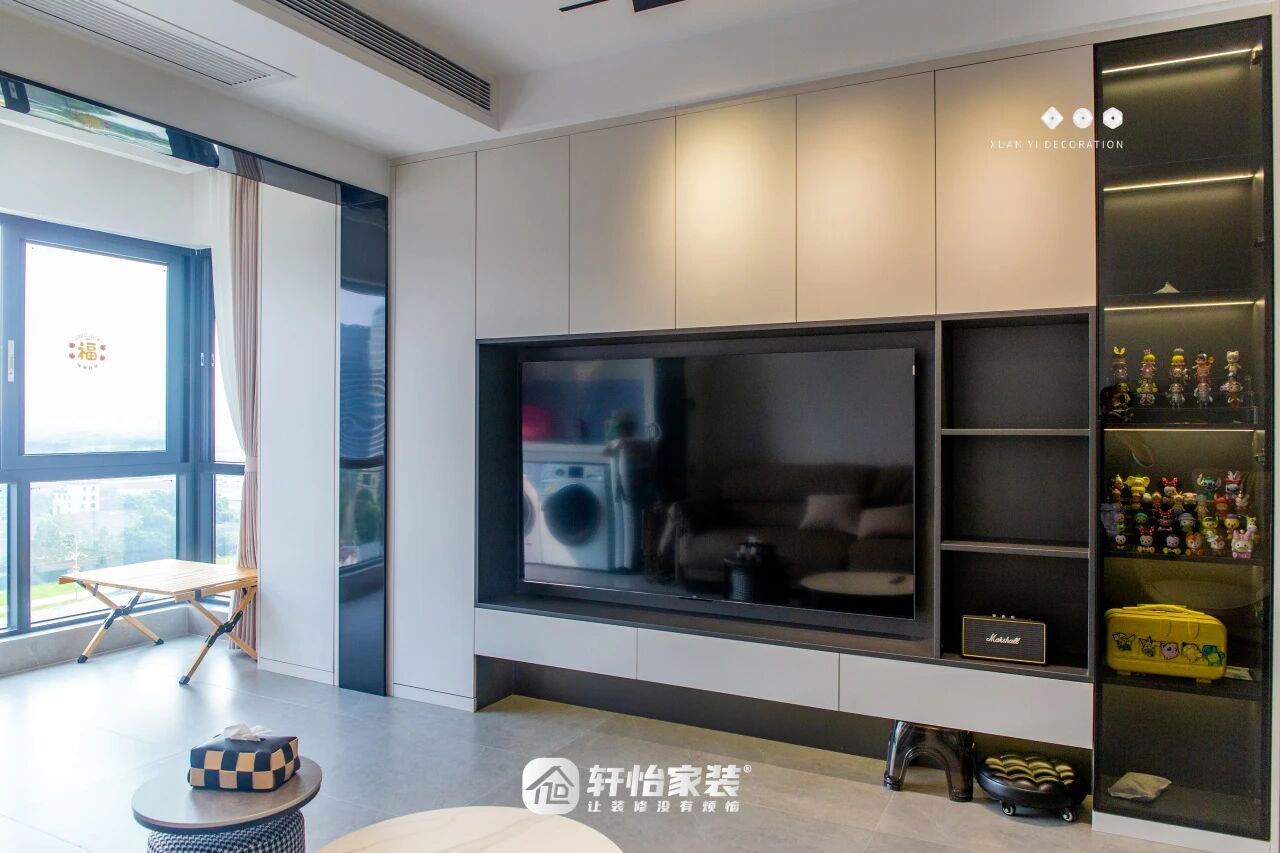 背景墙收纳:解决储物难题随着居住时间延长,收纳需求增加。电视背景墙是绝佳收纳空间,留出电视机位后,其余部分做成封闭或半封闭柜子,既实用又美观。轩怡家装强调,这是装修必看的高赞建议。