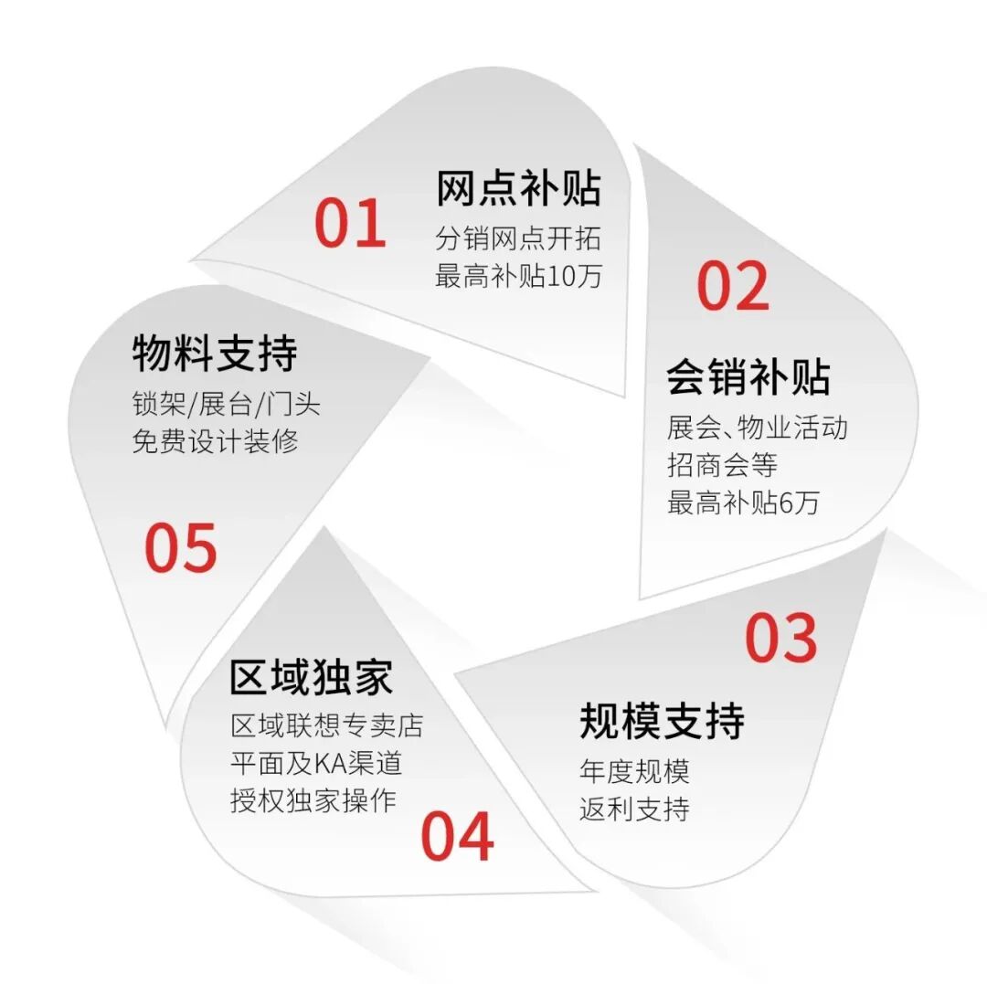 区域独家:区域独家保护,保障专属利益。联想专卖店、平面及KA渠道授权独家操作,确保每个区域合作伙伴独享市场红利,最大化挖掘区域市场潜力。