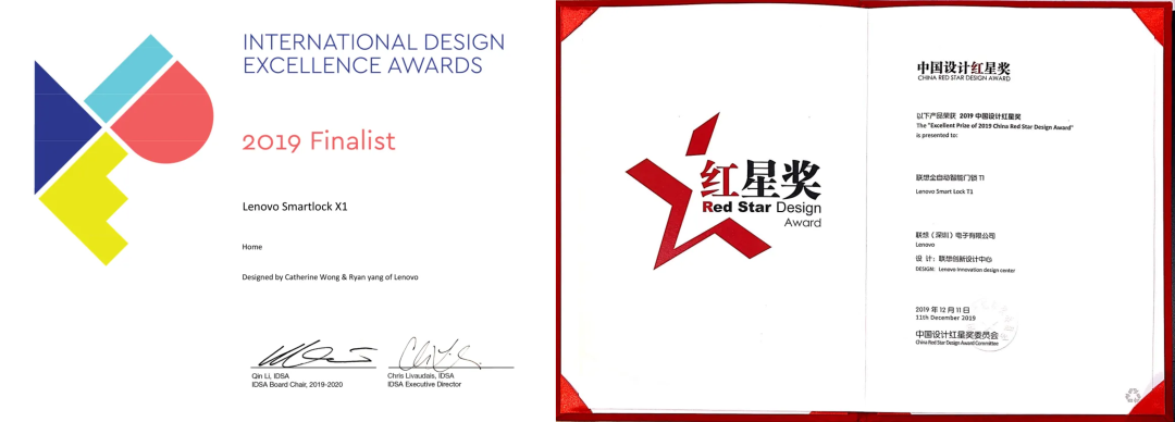 联想智能锁先后斩获“IDEA工业设计奖”、“中国设计红星奖”等海内外权威荣誉,连续多年跻身“中国智能锁行业十大品牌”,成为3.15重点推荐品牌。累计专利100+项,产品通过多项质量认证,105项品控测试。