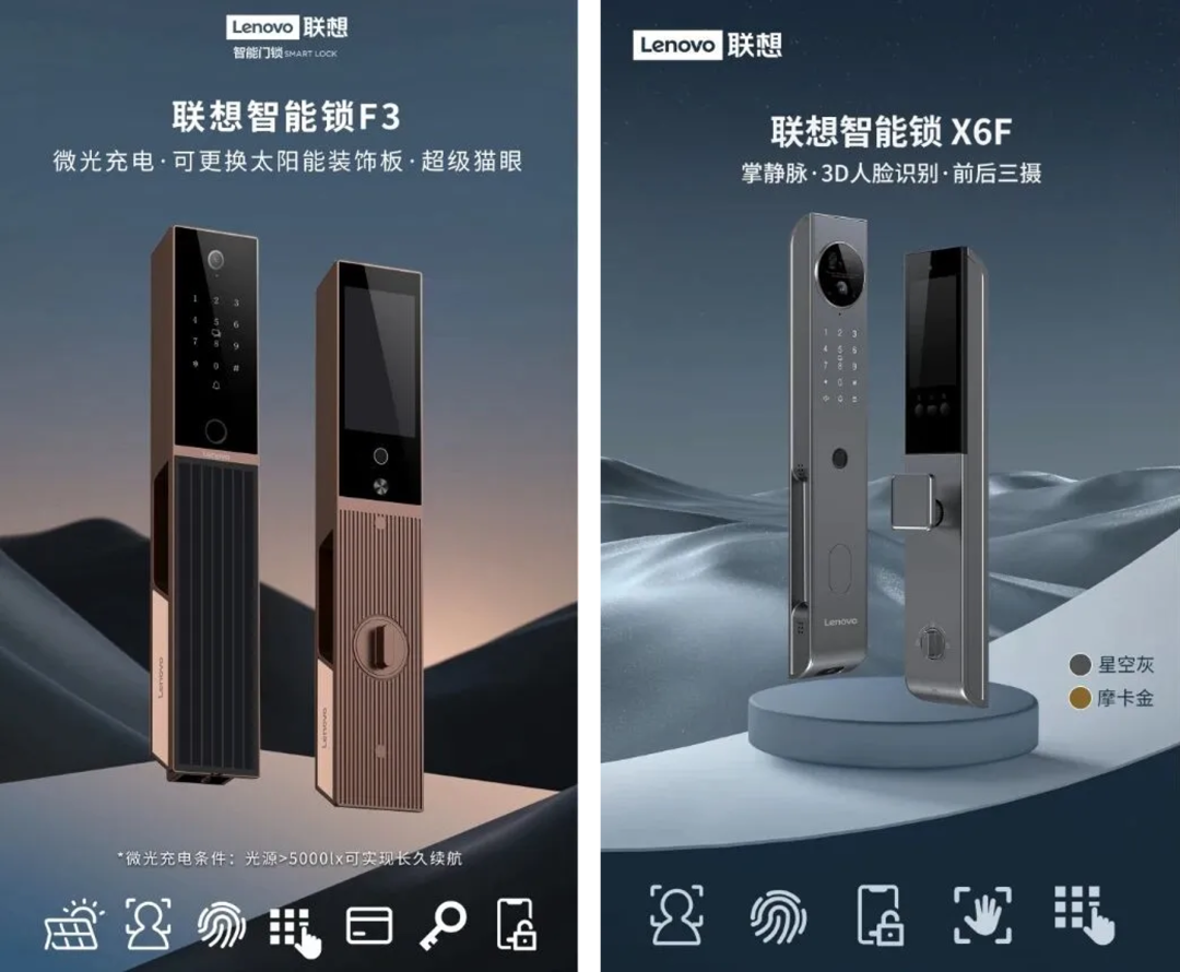 联想智能锁打造了高端旗舰、中端爆款、高质价比普及款的全产品矩阵,实现全场景覆盖,满足不同渠道、不同客群的消费需求,成为线下渠道与消费者的双重优选。联想智能锁部分热销产品