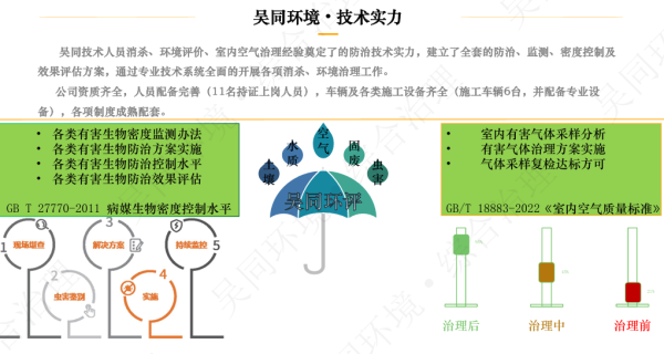 华北地区专业的环境治理服务商,拥有多项环境治理资质认证,为客户提供虫害防制、空气治理、环境消毒等专业服务。