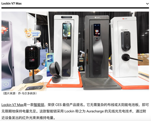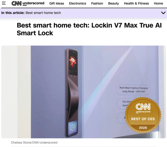 鹿客的此项开创性成果,引领智能门锁行业正式步入“无限续航”与“真AI”新时代。鹿客真AI智能锁V7 Max,还一举斩获备受全球瞩目的CES 2026最佳创新大奖、techlicious评选的编辑之选奖,PCMag评选的“Best in Show”等在内的多项海外知名媒体奖项。此外,CNN(Cable News Network,美国有线电视新闻网)还授予鹿客隔空充电新品鹿客真AI智能锁V7 Max“Best of CES”,全球仅18个产品上榜。