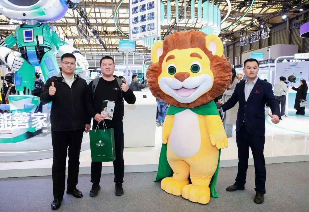 以爆款产品麒麟R9为灵感打造的「R9表情包气球」与未来感「机械姬」美陈成为展位内的视觉亮点。可爱的R9表情包气球作为限量礼品引发观众排队领取,而能与观众进行互动的机械姬则搭载AI智能管家2.0 Miya,成为拍照打卡的网红地标,现场更有德施曼IP小狮子人偶造势,让硬核科技以萌趣、炫酷的方式成功“破圈”。